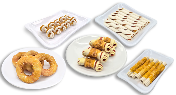Las principales ventajas de los masticables para mascotas son "ingredientes naturales y comestibles, sabor masticable que no daña los dientes, y nutrientes añadidos"; Los snacks para mascotas se caracterizan por "sin conservantes, sin colorantes artificiales y ricos gusto."