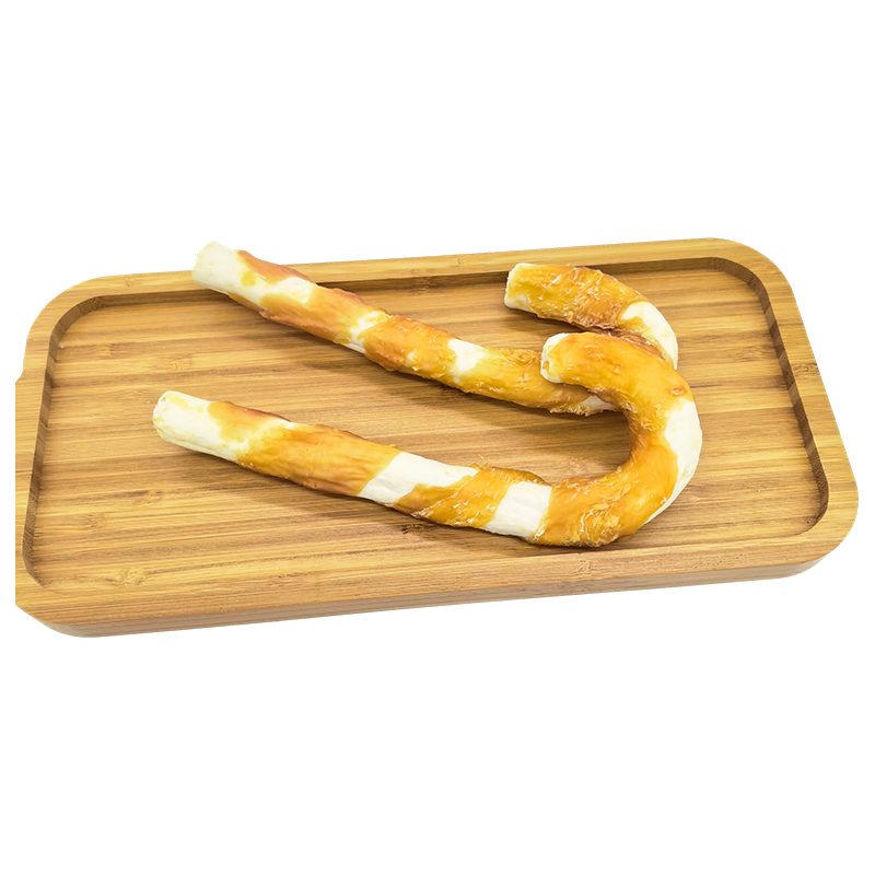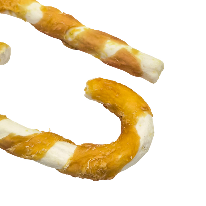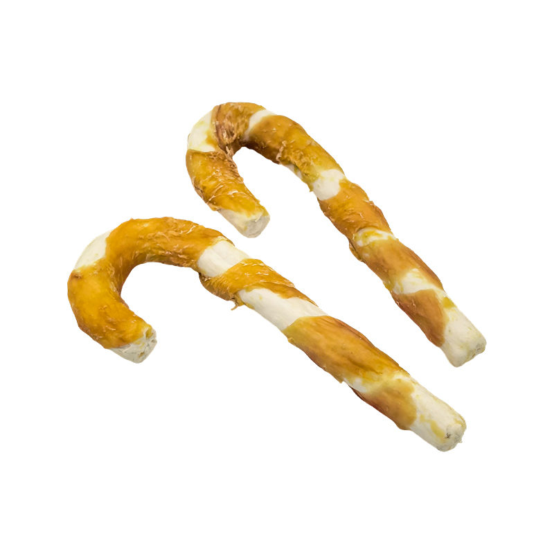 NP006 Golosinas masticables para perros compuestas de cuero crudo envueltas en pollo con bastón de caramelo de 7"