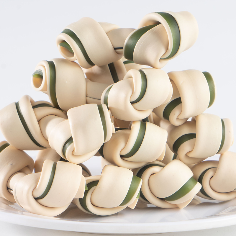 Inicio / Productos / Serie Hueso Anudado / Golosinas Masticables de Chicle para Limpiar los Dientes de Perro 2.5-3”