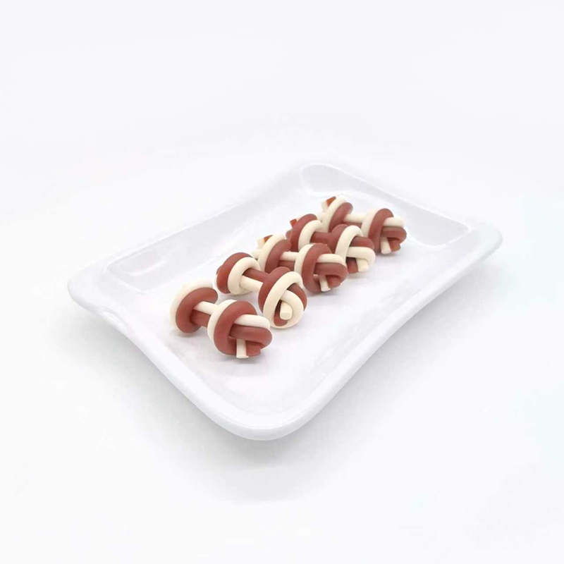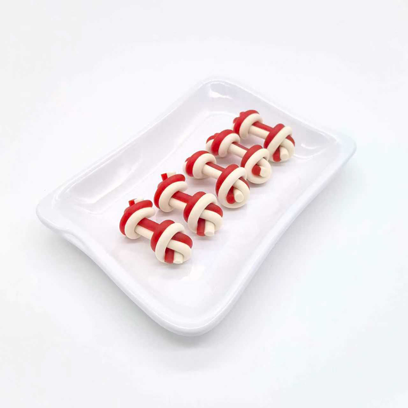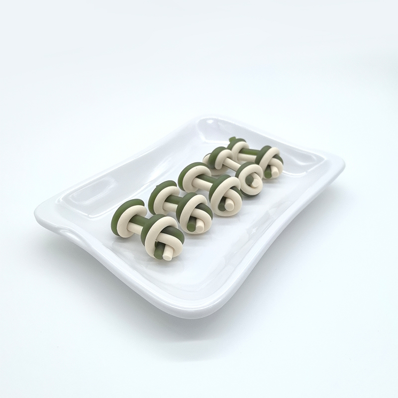 Inicio / Productos / Serie Hueso Anudado / Golosinas masticables para articulaciones de dos colores y doble tira para aliviar el estrés y los suplementos nutricionales