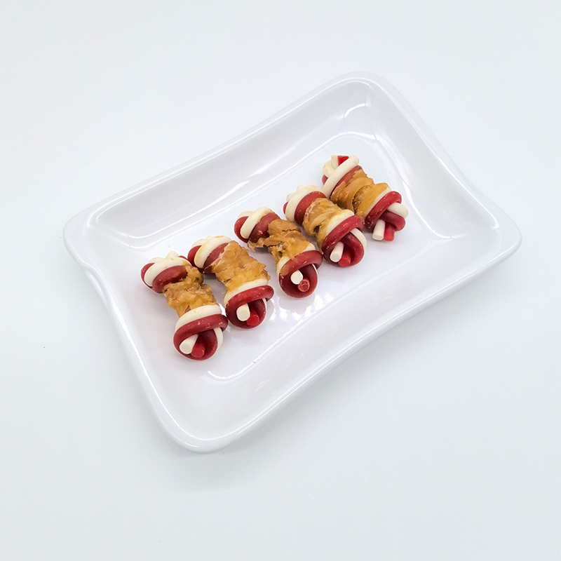 Inicio / Productos / Golosinas para perros envueltas en carne / Golosinas para Perros de 2.5-3 Pulgadas, con Cinco Sabores, Envuelto en Hueso con Pollo para Limpiar los Dientes