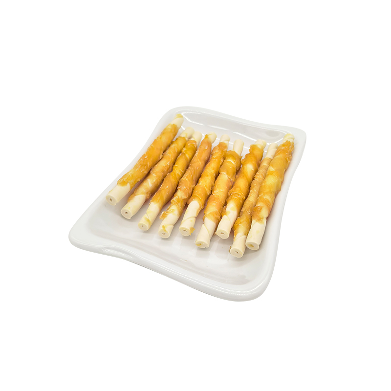 ST001 Rollos de pollo para mascotas envueltos en carne nutritiva de 12 cm con sabor a leche combinan pollo de primera calidad con una base de almidón. La capa exterior es rica y deliciosa, mientras que el núcleo interior tiene un sabor lechoso, satisfaciendo los hábitos naturales de masticación de tu perro y proporcionando un sabor agradable. Este producto está formulado científicamente para ser rico en proteínas de alta calidad y proporcionar nutrientes esenciales para que su mascota mantenga una buena salud. Perfecto para recompensas de entrenamiento diario o refrigerios, el tamaño de 12 cm es fácil de masticar para perros pequeños y medianos, lo que lo hace seguro, masticable e irrompible, brindando una experiencia de masticación agradable para su perro.