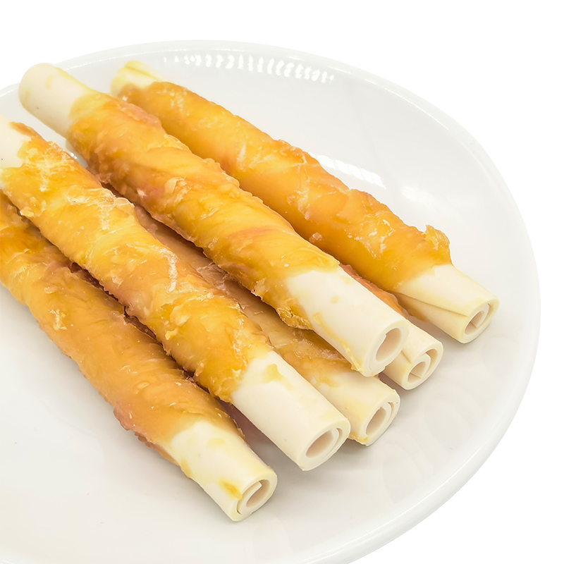 Rollo de pollo para mascotas con carne envuelta nutritiva de 12 cm y sabor a leche